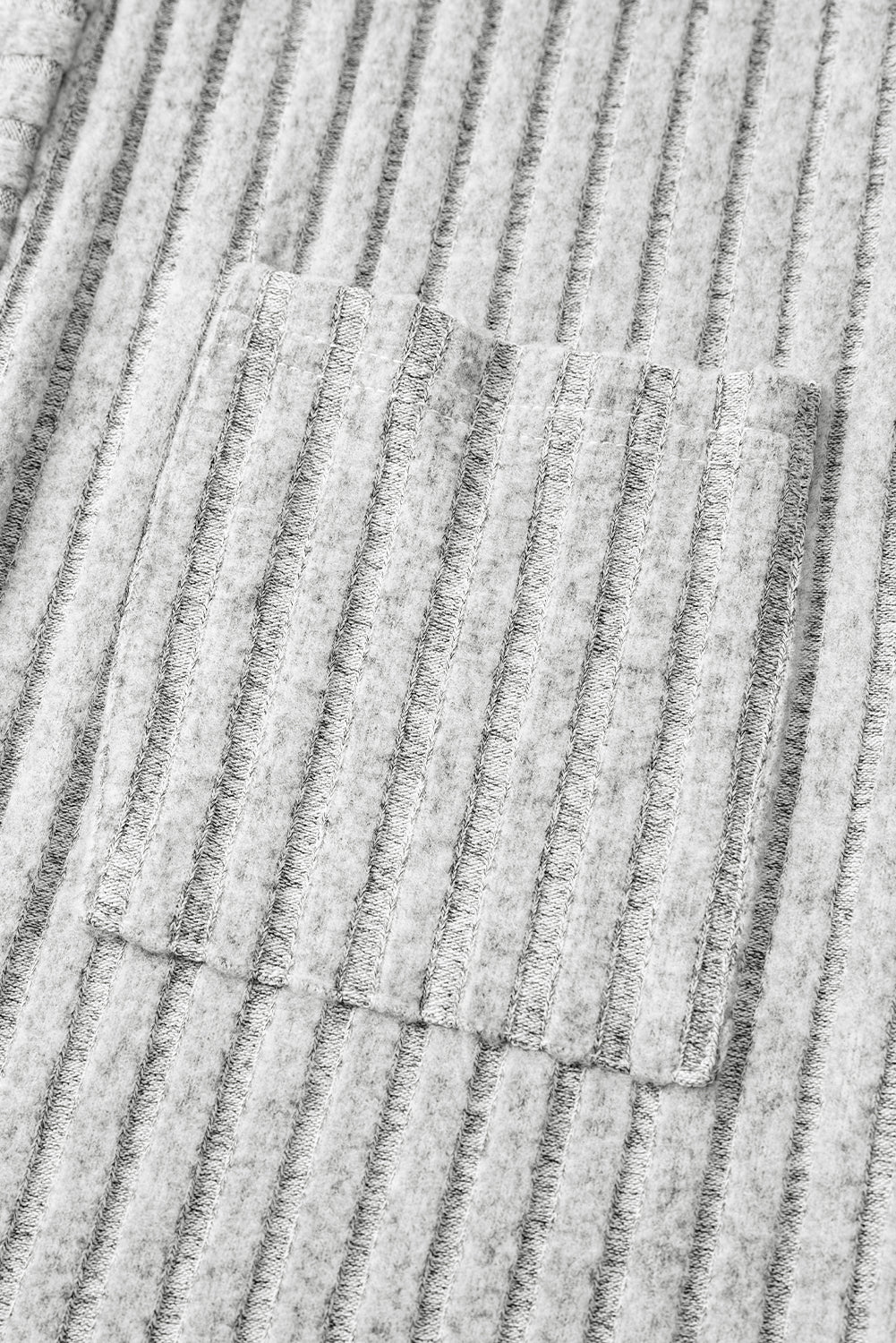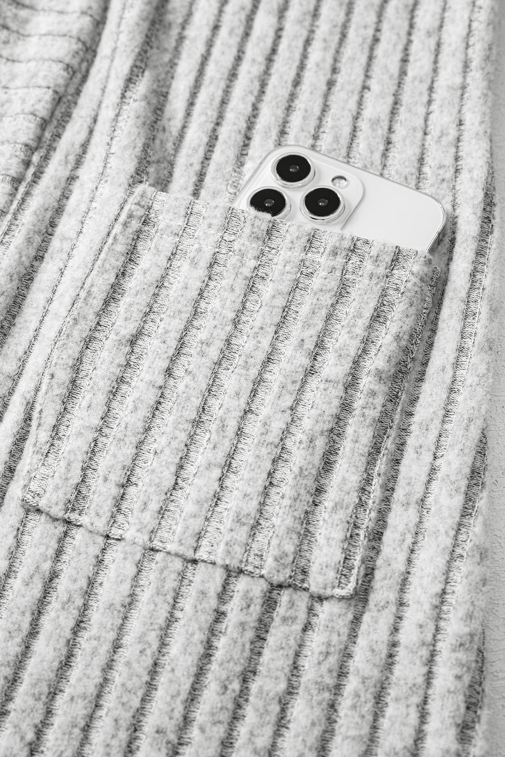 Gray Ribbed Knit Open Front Tunic Cardigan with Pockets - Gray / L / 65%Viscose+30%Polyester+5%Elastane
