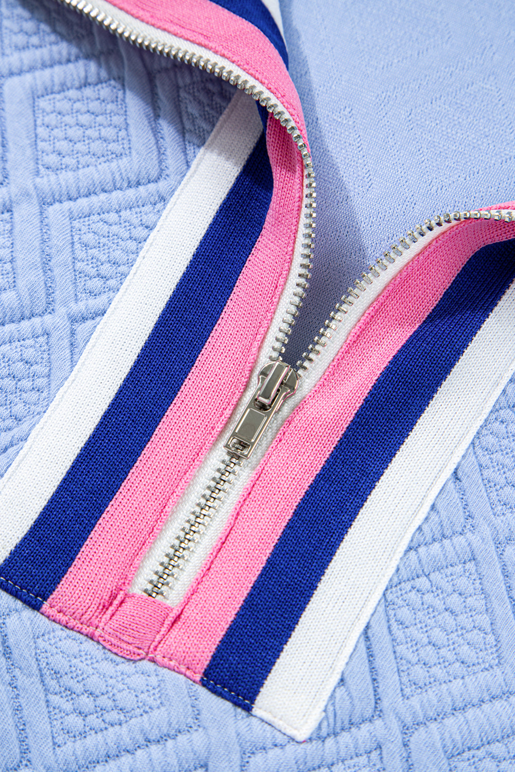 Beau Blue Striped Pop of Color Collared Checkered Textured Plus Size Dress - Beau Blue / 1X / 97%Polyester+3%Elastane