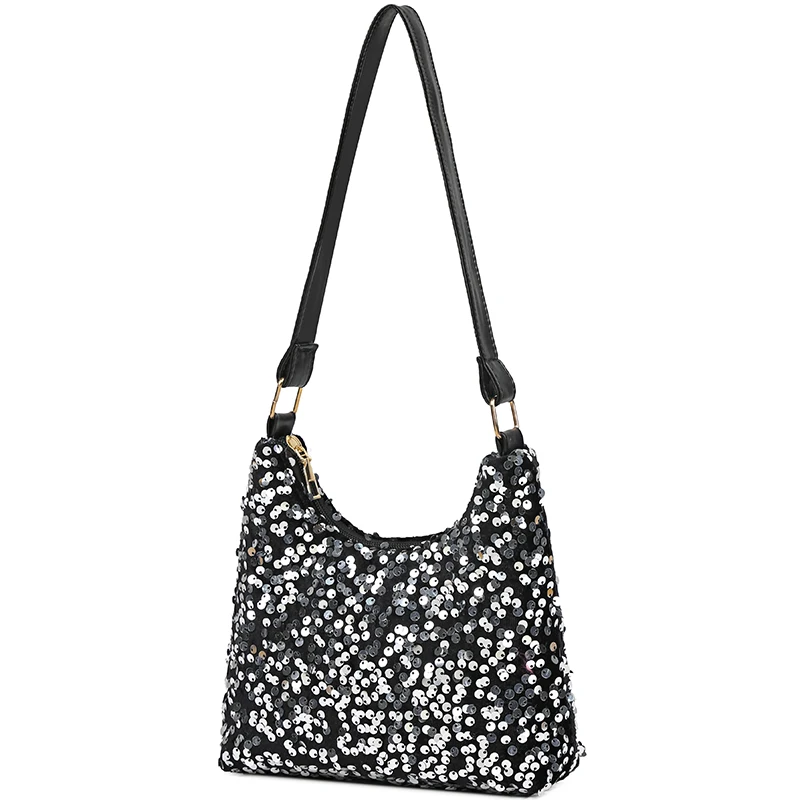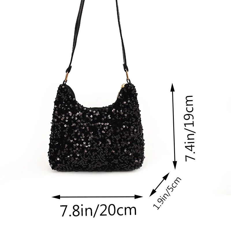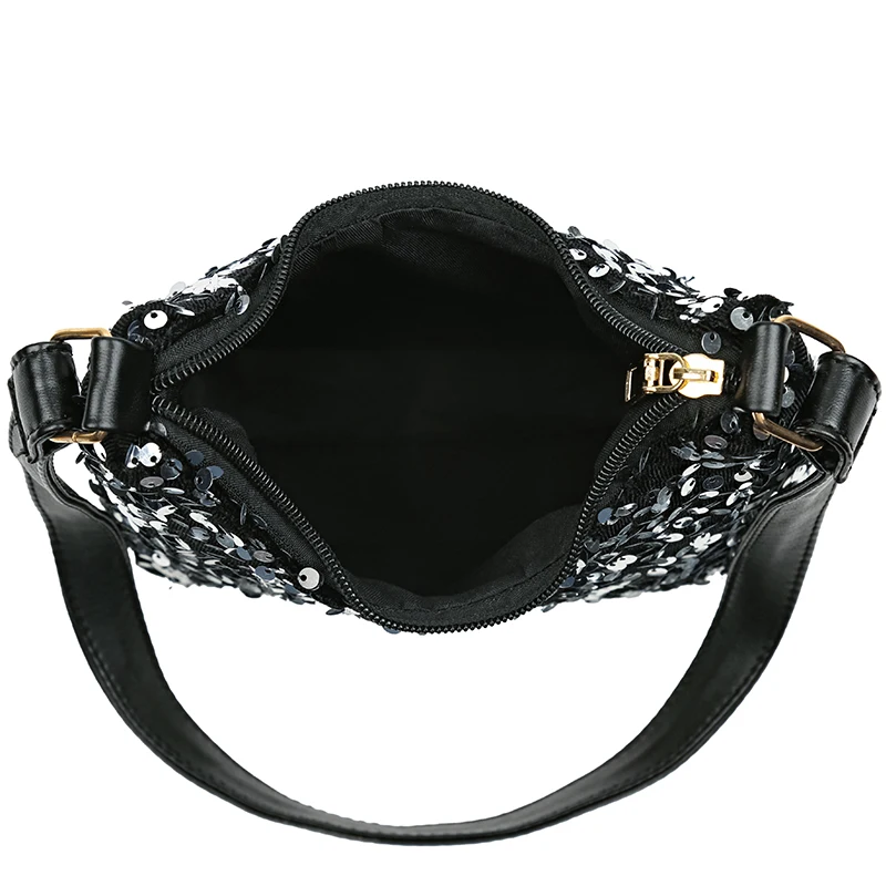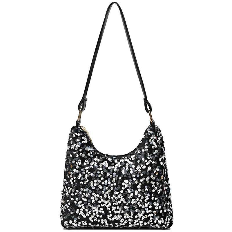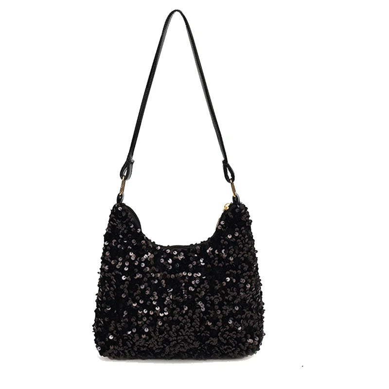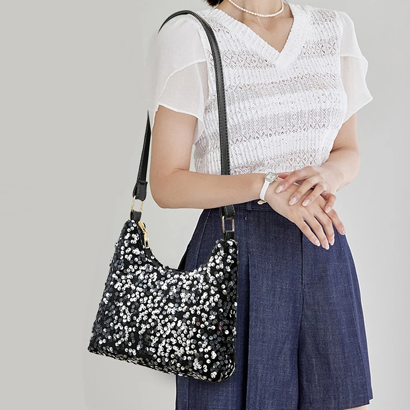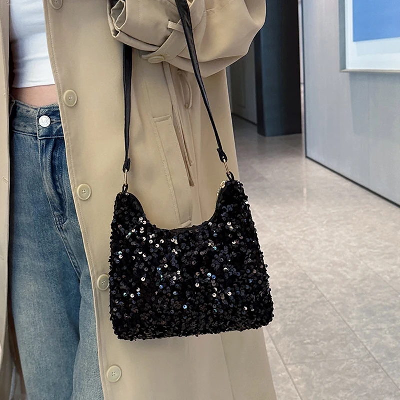 Ladies' single-shoulder bag for evening events. Suitable for banquet, travel, shopping and photography. With sequin design. - W38black
