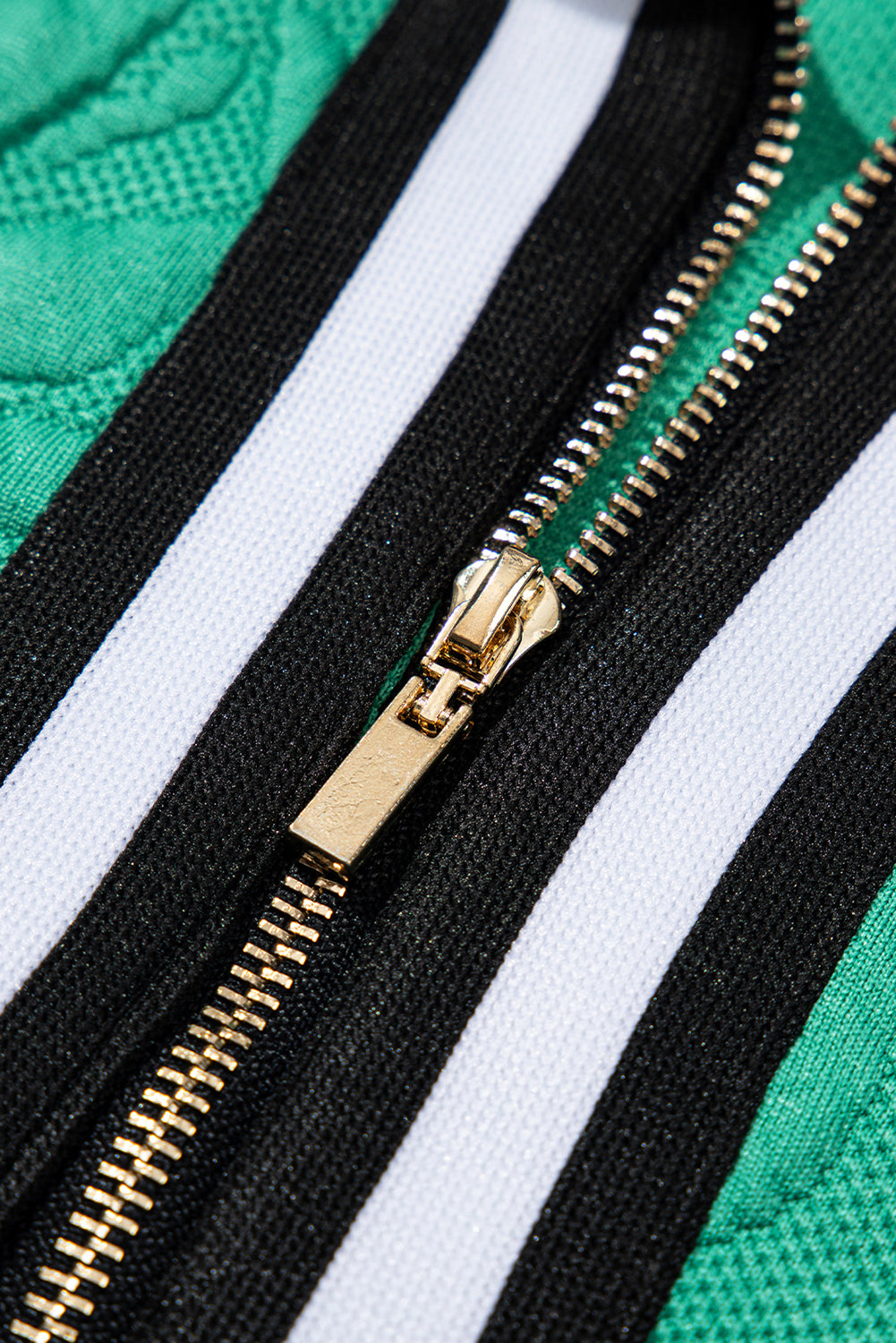 Sea Green Jacquard Textured Quarter Zipper Pop of Color Neckline Dress - Sea Green / L / 97%Polyester+3%Elastane