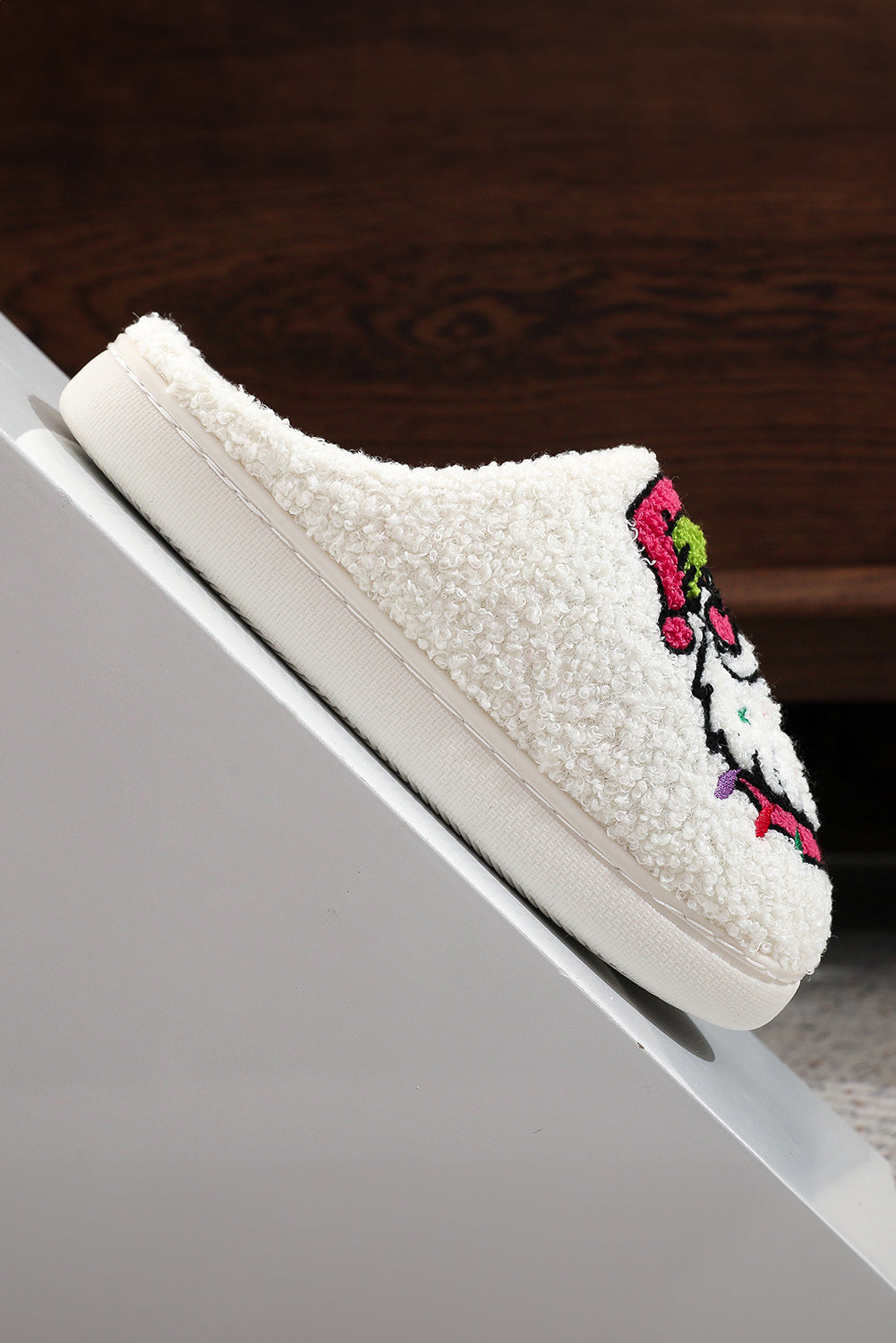 White Starry Santa Claus Pattern Christmas Plush Slippers - White / 37 / 100%Polyester+100%TPR