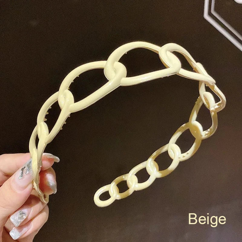 Women Headband Hairband Fashion Chain Round Band For Hair Girls Hair Accessories Headwear Traceless Hair Hoop Bang Holder - Black / Size fits all
